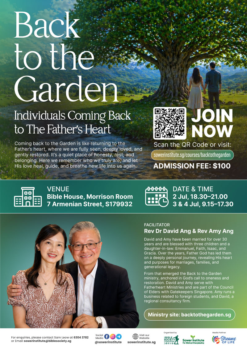 For enquiries, please contact Sam Leow at 6304 3782 or email sowerinstitute@biblesociety.sg