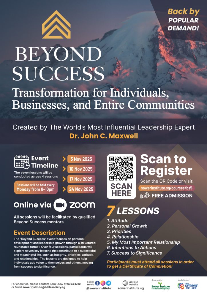 For enquiries, please contact Sam Leow at 6304 3782 or email sowerinstitute@biblesociety.sg