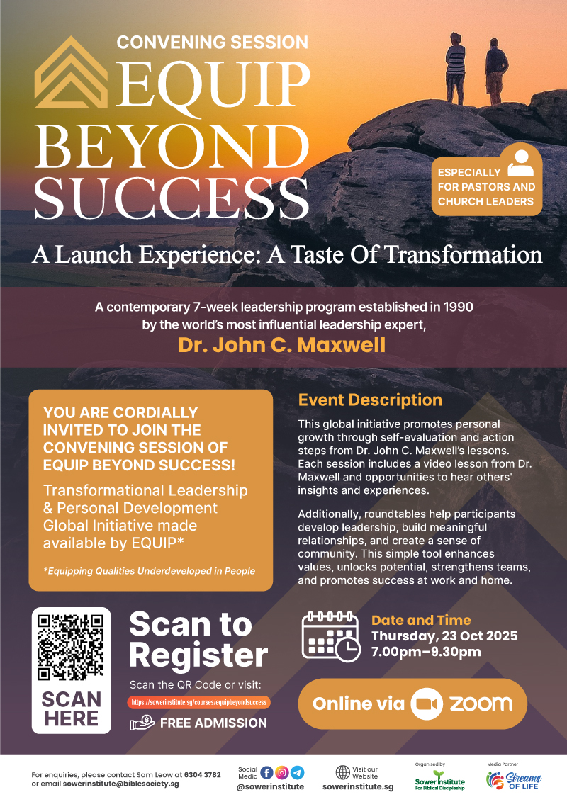 For enquiries, please contact Sam Leow at 6304 3782 or email sowerinstitute@biblesociety.sg