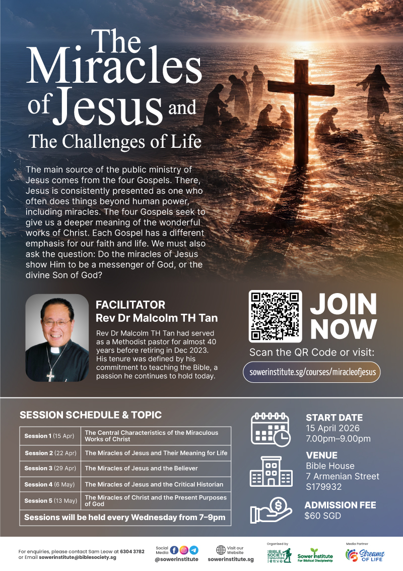 For enquiries, please contact Sam Leow at 6304 3782 or email sowerinstitute@biblesociety.sg