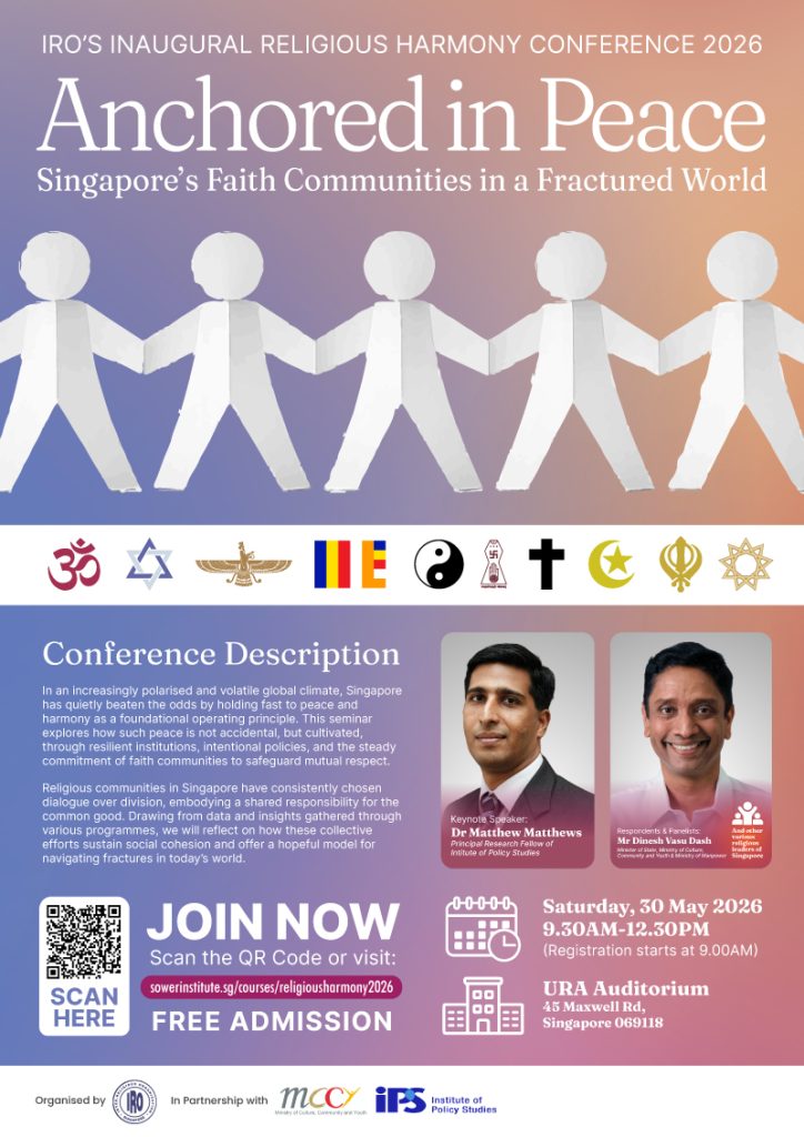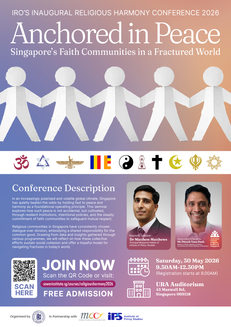 In an increasingly polarised and volatile global climate, Singapore has quietly beaten the odds by holding fast to peace and harmony as a foundational operating principle. This seminar explores how such peace is not accidental, but cultivated, through resilient institutions, intentional policies, and the steady commitment of faith communities to safeguard mutual respect.