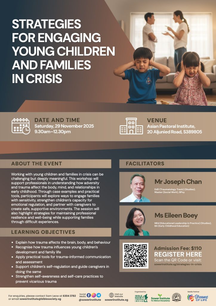For enquiries, please contact Sam Leow at 6304 3782 or email sowerinstitute@biblesociety.sg